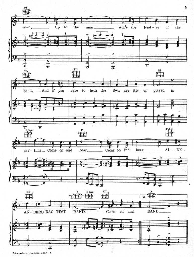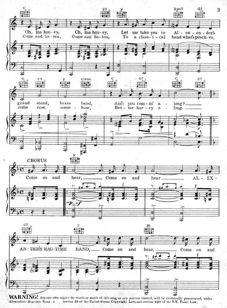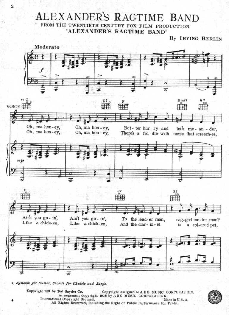 This song was a landmark. Nevertheless it was criticized heavily for it's irregular and poor composition. It was universally condemned by ragtime purists as just a lousy march with equally lousy lyrics, but the song still became immensely popular and launched a long and very productive career for an uneducated, unknown Jewish immigrant named Irving Berlin. This guy couldn't even read music much less play a piano. Even he himself admitted that he was a "musical ignoramus".